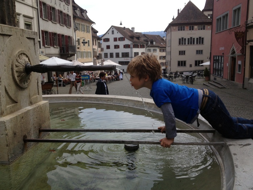 Many Swiss tour guides would recommend visiting in summer, when the window boxes are bursting with colour, one can hear the sound of cowbells everywhere, and the weather is pleasantly inviting to encourage kids to have a run around. And when it gets warm, in most places there will be fountains and drinking troughs, where you can simply fill your water bottle and enjoy the cold Alpine refreshment for free.