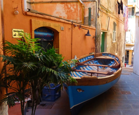 - We will stroll to the end of the harbour underneath the early 13 th century Genovese defensive tower, Torre Belforte, to get a complete view of stunning Vernazza and the Mediterranean Sea and then return to the square; Vernazza’s center of community life, its fishing boats, cafes and “trattorie” (traditional local food restaurants) and begin our climb to the most spectacular view of Vernazza; up high above its harbour. Gardens appear through a steep medieval stone stairways and alleyways with their luscious plants and beautiful light. The atmosphere envelops us.