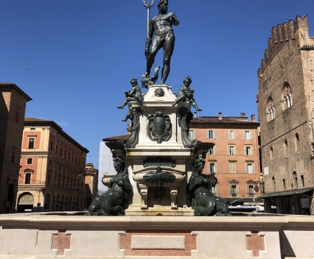 We will begin our Online Experience with a view of King Enzo's palace located in the historical centre of Bologna. The Neptune fountain, built in 1563, stands next to the palace which was put there for beautification and to provide drinking water to the public. On the sidewall of the palace, there are two statues of Eagle, one of which is rumoured to be made by Michelangelo. After admiring these sites, we will make our wat to visit some memorials from the Second World War and learn more about the role Bologna played in this period.