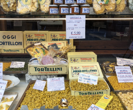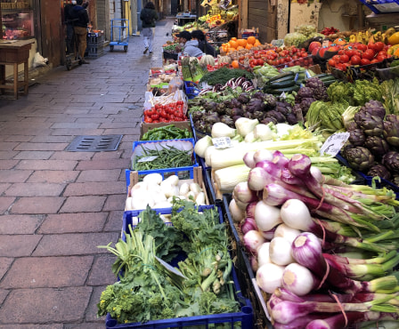 Towards the end of the tour, I will take you through the narrows alleys of the "Quadrilatero", the food district of Bologna, where you will get a glimpse of some of the food shops, bakeries, and delis. Together, we will admire their specialities, which include Parmigiano Reggiano, Prosciutto di Parma, Mortadella, Balsamic Vinegar and many more. Our last stop will be in front of the two towers Asinelli and Garisenda, built in the early 12th century.