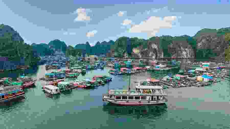 Cruise through the tranquil waters of Lan Ha Bay surrounded by limestone karsts and floating villages