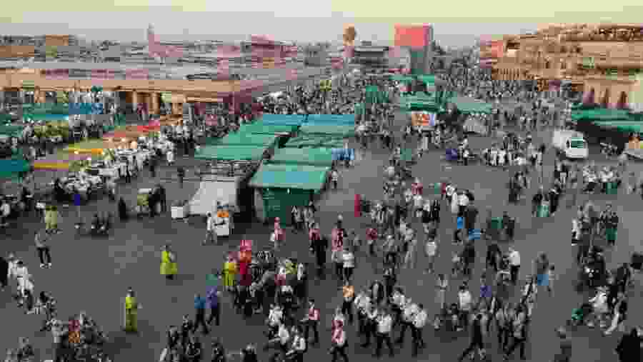 - Finally, finish the tour in the big square (Jemaa Elfna) that is the center of the city (from where to have a drink for a panoramic view of the Medina), the place of Gnawa musicians, snake charmers, monkey peddlers, and food. It's the place where the trip starts and finishes.