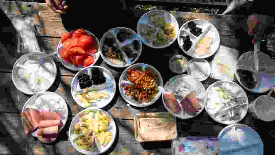 - Get your first experience of Jordanian and Palestinian food with um ahmad, the local farmer, will start with a breakfast rich of flavour, qalayet bandora, fresh olives and olive oil, labaneh, and in the stone oven over the charcoal you'll bake the traditional pie's with Wild Thyme and sumaq.
