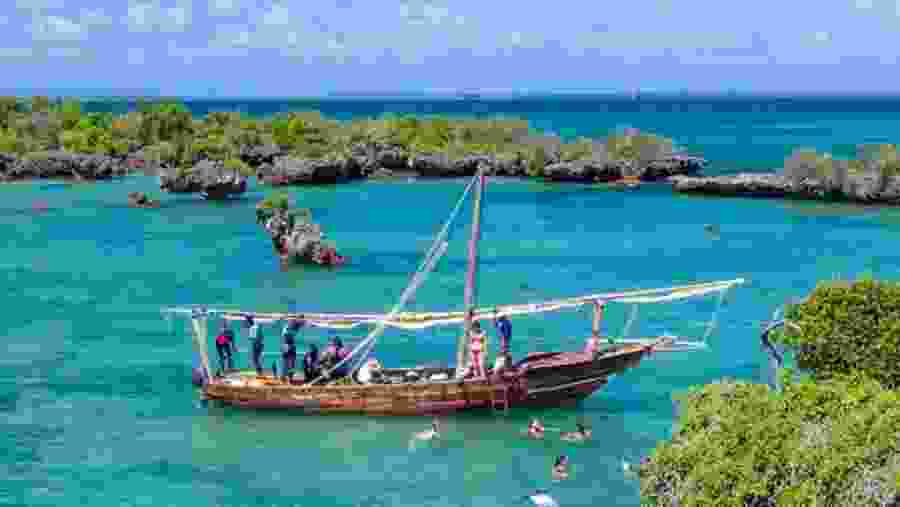 Safari Blue is a traditional dhow boat trip towards Menai Bay, full of uninhabited Islands and picturesque schools. Surrounded by the blue ocean and the sound of the waves, you can sunbathe or walk along the natural sand paths in the open water at low tide. Throughout the journey, you will receive cold drinks, fruit and a tasty lunch prepared with fresh fish and seafood.