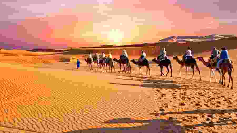 - After leaving Rissani, you will be able to make out the first outlines of Erg Chebbi's enormous sand dunes. Once you arrive in Merzouga, change up and board your own personal camel to start the trek across the sand dunes to your Bedouin-style camp.