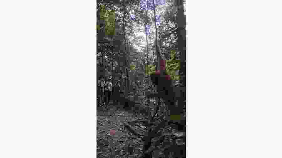 Firstly, we bring you to the orangutans, and you will follow a forest trail for 2-3 hours to explore more tropical flora and fauna. This is not a flat road but involves some ups and downs. It's a bit difficult, but in return, you will get a very pleasant experience and have a great opportunity to see gibbons, leaf monkeys, longtail and pigtail macagues, flying squirrels, Sumatra peacocks and hornbills. Wild orangutans may cross your path. But we cannot guarantee to see all of them. Just looking for your luck. The Jungle walk ends at the riverside, where you start your tubing experience. You will float on the river with a car tire float about 20 minutes to the hotel. It is a fun rafting and a relaxing way to enjoy the scenery.