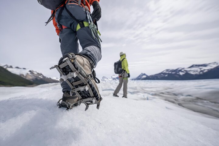 Trek across Perito Moreno Glacier in this full-day trip in Los Glaciares National Park from El Calafate.Travel to the park by bus, board a boat to cruise across Lago Argentino and conquer the glacier.Led by an expert guide, don your crampons and hike the stunning ice mass, discovering ice caves, waterfalls and deep crevasses along the way.Bring a packed lunch to enjoy atop one of the world's only advancing glaciers during your 4-hour trek.Reverse your journey across glacier, lake and Patagonian alpine road, ending with drop-off at your El Calafate hotel.