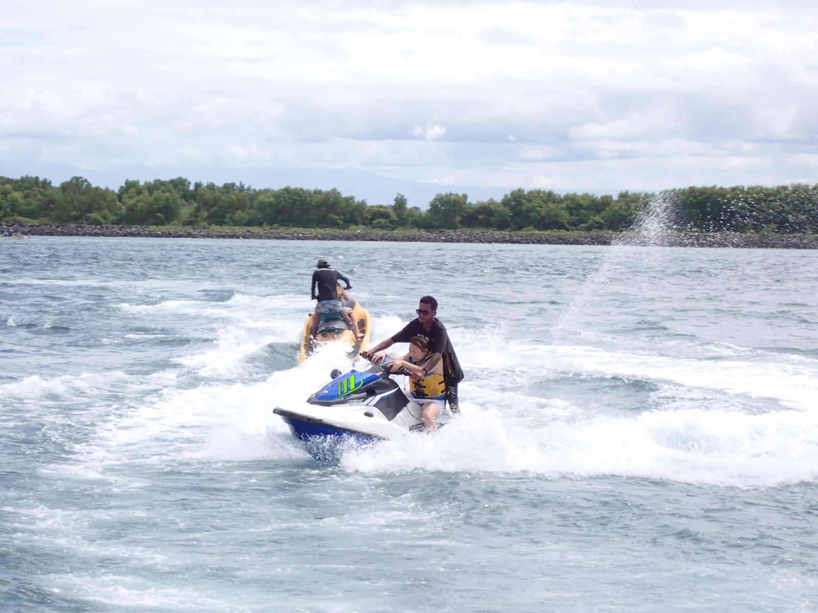 Jet ski is played by one person but must be accompanied by an instructor who is an expert in his field to avoid collisions with other riders, because of the congested location at certain hours and the terrain is rather difficult.This jet ski game is played for approximately 12 minutes or one [sensitive content]fore using this game you will be briefed on how to drive.Enjoy the sensation of this water sports experience.